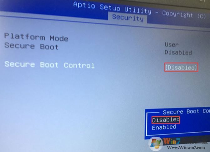 1、重啟筆記本按esc進入BIOS設(shè)置,然后按F7進入高級模式,按→方向鍵移動到Security,選擇Secure Boot,然后回車進入把Secure Boot control選enabled改為disabled關(guān)閉安全啟動,然后按F10保存重啟;
