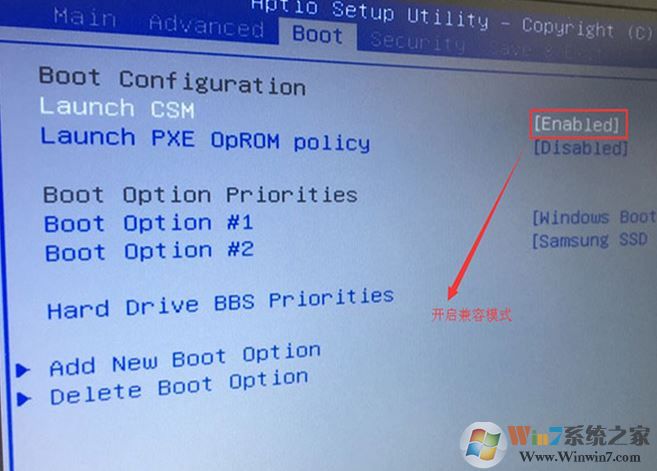 2、重啟后切換到BOOT的選項,把Launch CSM由disabled改成enabled,開啟兼容模式;