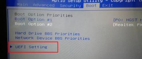 2、轉(zhuǎn)到Boot界面,選擇UEFI Setting回車;