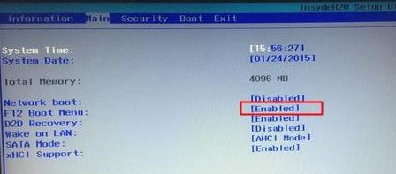 4、轉(zhuǎn)到Main,選擇F12 Boot Menu回車(chē),設(shè)置為Enabled,按F10選擇Yes回車(chē)保存修改,如下圖所示;