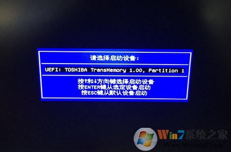 3、保存更改后會(huì)自動(dòng)重啟,插入制作好的U盤(pán)啟動(dòng)盤(pán),重啟后不停的按F11,選擇識(shí)別到U盤(pán)啟動(dòng)進(jìn)入PE,回車(chē);