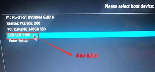 5、插入U盤啟動盤,重啟按ESC選擇識別到U盤啟動項,回車;