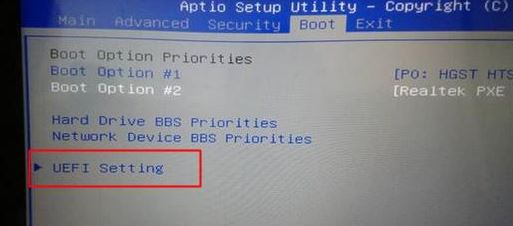 2、轉(zhuǎn)到Boot界面,選擇UEFI Setting回車(chē);