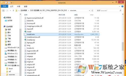 2、打開Windows7的ISO文件,在sources里找到install.win。把這個(gè)文件復(fù)制出來