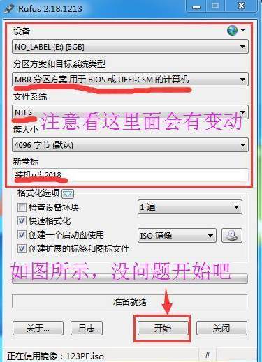 文件系統(tǒng)也順便要改成NTFS格式,確定無(wú)誤后點(diǎn)開始。