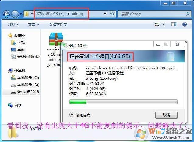 我們來(lái)演示一下,看能不能把4G以上的文件復(fù)制到剛做好的U盤里