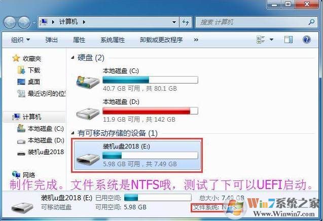 制作完成后,是NTFS格式,我們測(cè)試了下,可以UEFI啟動(dòng)。