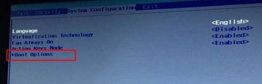 2、移動鍵盤右鍵頭到System Configuration下,選擇Boot Options,按回車鍵進入設(shè)置;