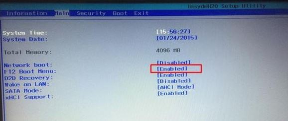 4、轉(zhuǎn)到Main,選擇F12 Boot Menu回車,設(shè)置為Enabled,按F10選擇Yes回車保存修改,如下圖所示;