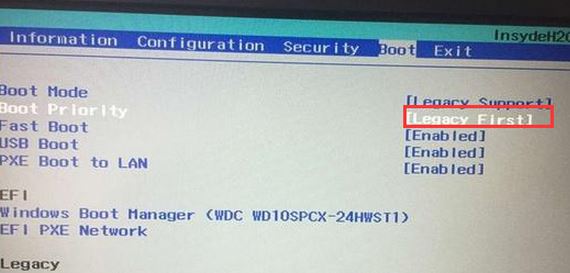 5、再把Boot Priority設(shè)置成Legacy First,按F10彈出窗口選擇yes回車;