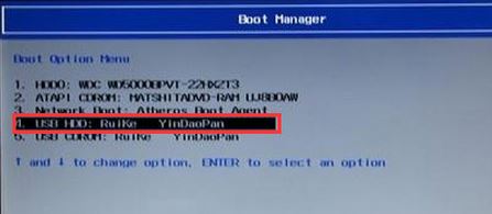 5、插入U盤啟動盤,重啟時不停的按下f12,打開Boot Manager,選擇USB HDD回車從U盤啟動,如下圖所示;