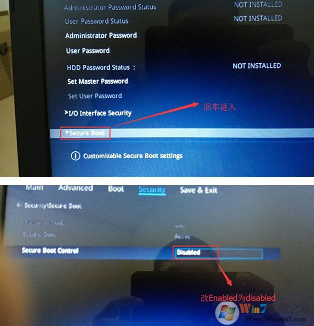 1、重啟筆記本按esc進(jìn)入BIOS設(shè)置,然后按F7進(jìn)入高級模式,按→方向鍵移動到Security,選擇Secure Boot,然后回車進(jìn)入把Secure Boot control選enabled改為disabled關(guān)閉安全啟動,然后按F10保存重啟;