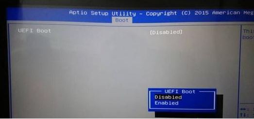 3、選擇UEFI Boot回車設(shè)置成Disabled,如果有CSM,設(shè)置為Enabled,然后按F10保存設(shè)置;