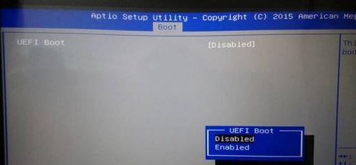 3、選擇UEFI Boot回車設(shè)置成Disabled,如果有CSM,設(shè)置為Enabled,然后按F10保存設(shè)置;