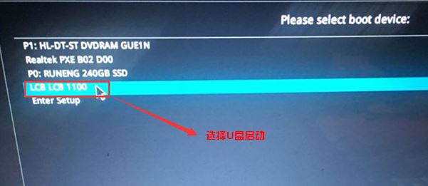 4、插入U(xiǎn)盤(pán)啟動(dòng)盤(pán),重啟按ESC選擇識(shí)別到U盤(pán)啟動(dòng)項(xiàng),回車(chē)即可使用U盤(pán)啟動(dòng),如圖: