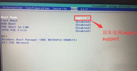 4、切換到Boot,把Boot Mode從UEFI改成Legacy Support,如圖: