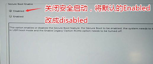 1、開(kāi)機(jī)一直按F2進(jìn)入BIOS,按F2進(jìn)入BIOS界面,切換到secure BOOT頁(yè)面,選擇secure Boot Enable按回車(chē)改成Disabled,關(guān)閉安全啟動(dòng),否則安裝win7后啟動(dòng)失敗,如圖所示;