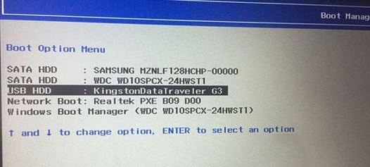 5、插入制作好的U盤啟動盤,重啟按F12或FN+F12調出啟動管理對話框,選擇USB HDD識別到U盤啟動進入PE,回車;