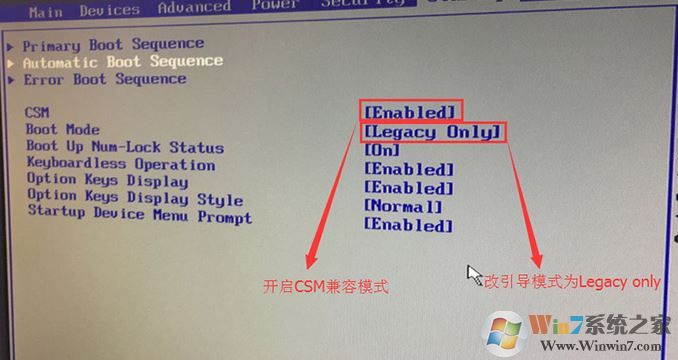 3、切換到Boot,把Boot Mode從UEFI改成Legacy only引導模式,再把csm默認disabled改成enabled,開啟兼容模式;