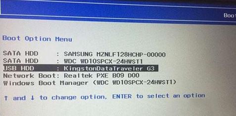 6、插入制作好的U盤啟動盤,重啟按F12或FN+F12調(diào)出啟動管理對話框,選擇USB HDD識別到U盤啟動進入PE,回車進入PE: