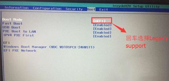 4、切換到Boot,把Boot Mode從UEFI改成Legacy Support;