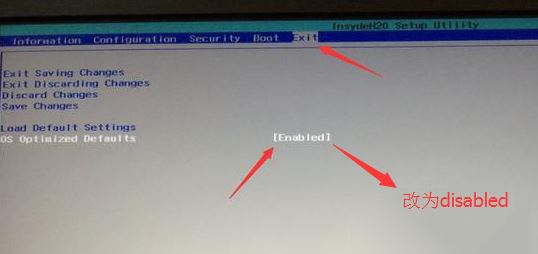 2、轉(zhuǎn)到Exit,把OS Optimized Defaults設(shè)置為Disabled或Other OS,如下圖所示;