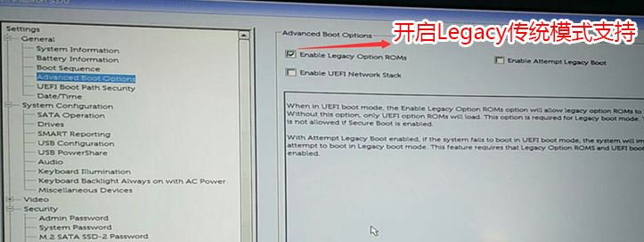 3、切換到Advanced Boot Options將右邊的Enable legacy option roms選項(xiàng)打勾,如下圖所示;