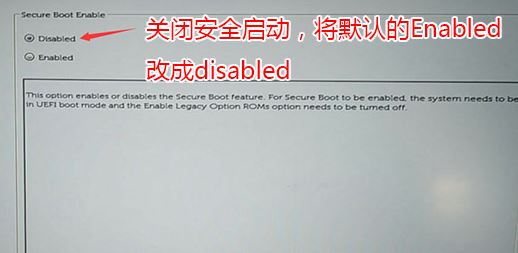 1、開機一直按F2進入BIOS,按F2進入BIOS界面,切換到secure BOOT頁面,選擇secure Boot Enable按回車改成Disabled,如圖所示;