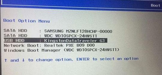 4、插入制作好的U盤(pán)啟動(dòng)盤(pán),重啟按F12或FN+F12調(diào)出啟動(dòng)管理對(duì)話框,選擇USB HDD識(shí)別到U盤(pán)啟動(dòng)進(jìn)入PE,回車(chē);