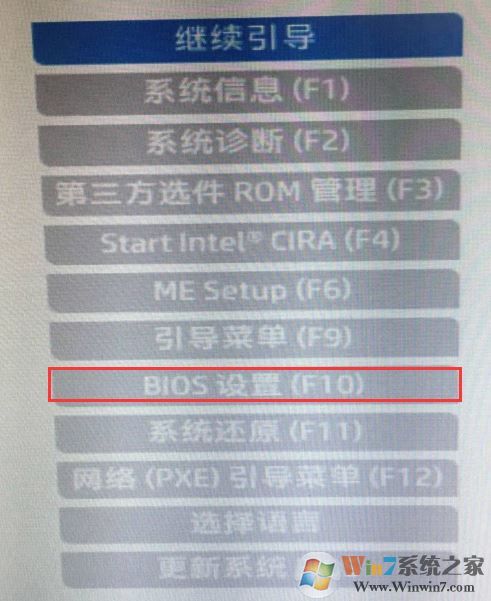 1、開機一直按按ESC,出現(xiàn)以下界面后,再按F10進入BIOS,如下圖所示;