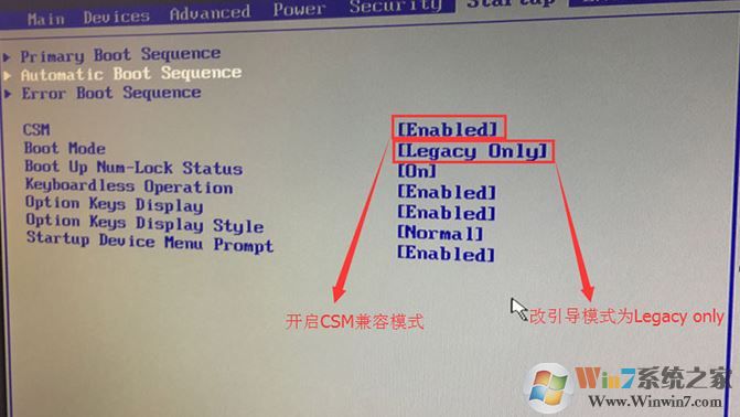 3、切換到Boot,把Boot Mode從UEFI改成Legacy only引導模式,再把csm默認disabled改成enabled,開啟兼容模式,選擇F10保存設(shè)置,在彈出的選項中選擇YES;