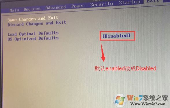 2、轉(zhuǎn)到Exit,把OS Optimized Defaults設(shè)置為Disabled;