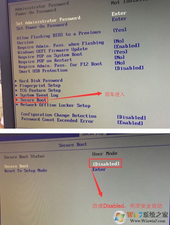 1、開機一直按F2或(FN+F2)進入BIOS,按→方向鍵切換到Security,選擇Secure Boot回車設(shè)置成Disabled;
