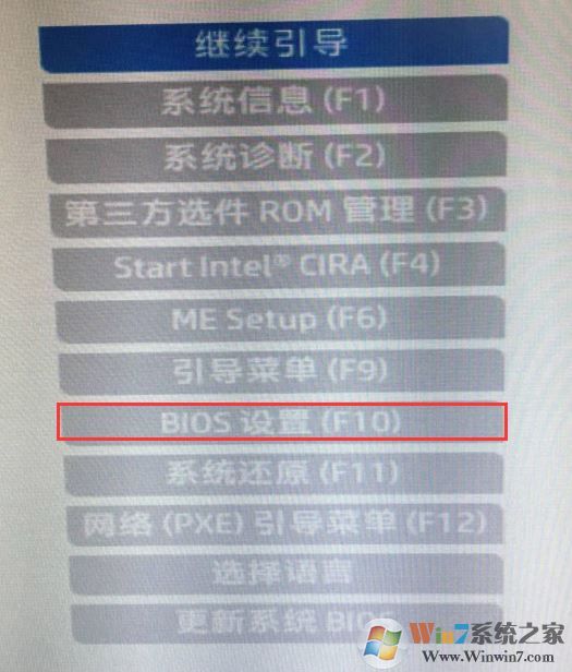 1、開機一直按按ESC,出現(xiàn)以下界面后,再按F10進入BIOS,如下圖所示;
