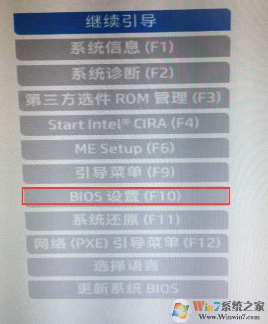 1、開機(jī)一直按按ESC,出現(xiàn)以下界面后,再按F10進(jìn)入BIOS,如下圖所示;