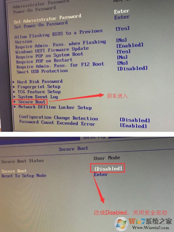 1、開機一直按F2或(FN+F2)進入BIOS,按→方向鍵切換到Security,選擇Secure Boot回車設(shè)置成Disabled;