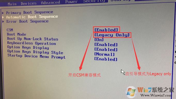 3、切換到Boot,把Boot Mode從UEFI改成Legacy only引導(dǎo)模式,再把csm默認(rèn)disabled改成enabled,開啟兼容模式,選擇F10保存設(shè)置,在彈出的選項(xiàng)中選擇YES;