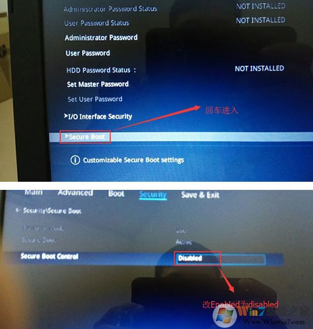 1、開機(jī)一直按F2或(FN+F2)進(jìn)入BIOS,按→方向鍵切換到Security,選擇Secure Boot回車設(shè)置成Disabled;
