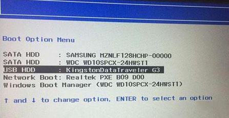 5、插入制作好的U盤啟動(dòng)盤,重啟按F12或FN+F12調(diào)出啟動(dòng)管理對(duì)話框,選擇USB HDD識(shí)別到U盤啟動(dòng)進(jìn)入PE,回車;