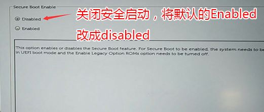 1、開機一直按F2進(jìn)入BIOS,按F2進(jìn)入BIOS界面,切換到secure BOOT頁面,選擇secure Boot Enable按回車改成Disabled,如圖所示;