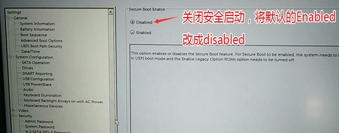 1、開機一直按F2進入BIOS,按F2進入BIOS界面,切換到secure BOOT頁面,選擇secure Boot Enable按回車改成Disabled,關閉安全啟動,否則安裝win7后啟動失敗,如圖所示;