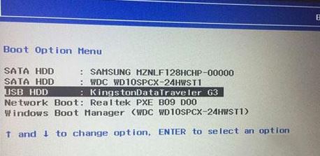6、插入制作好的U盤啟動盤,重啟按F12或FN+F12調(diào)出啟動管理對話框,選擇USB HDD識別到U盤啟動進(jìn)入PE,回車;