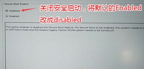 1、開機一直按F2進入BIOS,按F2進入BIOS界面,切換到secure BOOT頁面,選擇secure Boot Enable按回車改成Disabled,如圖所示;
