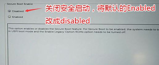 1、開機一直按F2進入BIOS,按F2進入BIOS界面,切換到secure BOOT頁面,選擇secure Boot Enable按回車改成Disabled,如圖所示;