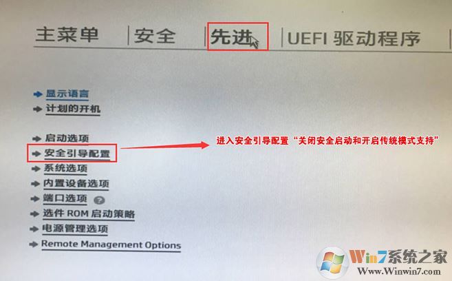 惠普256 G6安裝win7旗艦版步驟二:BIOS修改與U盤啟動