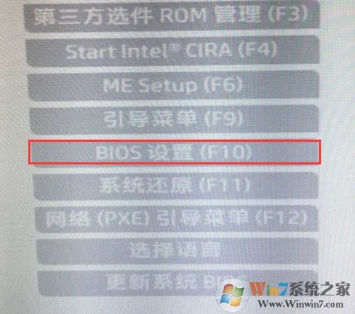 1、開機(jī)一直按按ESC,出現(xiàn)以下界面后,再按F10進(jìn)入BIOS,見下圖:
