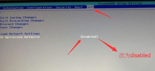 2、轉(zhuǎn)到Exit,把OS Optimized Defaults設置為Disabled或Other OS,如下圖所示;