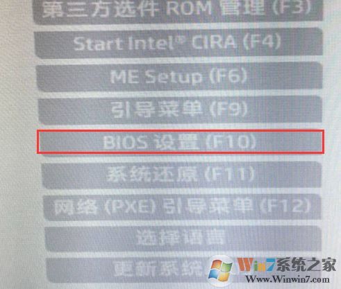 1、開(kāi)機(jī)一直按按ESC,出現(xiàn)以下界面后,再按F10進(jìn)入BIOS,如圖: