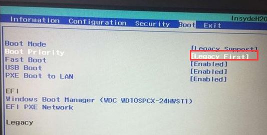 5、再把Boot Priority設(shè)置成Legacy First,按F10彈出窗口選擇yes回車;