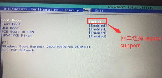 4、切換到Boot,把Boot Mode從UEFI改成Legacy Support;